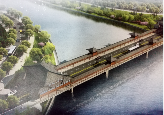 槠溪桥采用20+30+45+30+20m跨变截面现浇预应力砼连续梁,桥面宽22米,配以廊庭,可为过桥行人遮风挡雨。造型古朴的凉亭可供人们休憩、观景。该桥横跨槠溪河,槠溪桥是滨江西路梳理工程,是双塔公园南部延伸和拓展,桥梁的建设不仅增强了上饶县与主城区的联系,同时也实现了信江西岸景观绿化带的贯通,实现了双塔公园和樱花公园的对接。同时也将大大改善各景区的交通便利度,实现景区串联,实现大通道,对提高上饶市城市品位,促进城市经济和社会发展均有重要的意义。